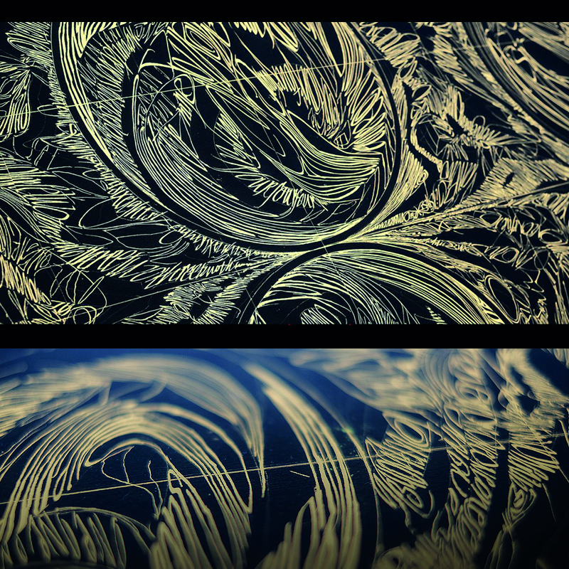 Along the way, we will search for the possibilities of a black background which allows us to create artwork with the colors that pop out of the paper with great contrasts and radiance. Well, this time we will be focusing on the black-on-black and all the grey shades in between with some shiny details.